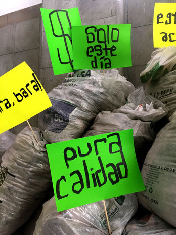 Having witnessed my own neighborhood of San Juan, from the renovations in Barrio Chino (Chinatown) to Victoria Street where I live, being ‘developed,’ I question the ongoing gentrification that’s been taking place in Mexico City with this installation which replicates how vendors advertise their best offers on the street.